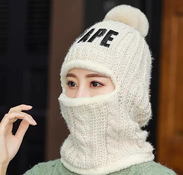 高档连体套帽帽子围巾防护帽加绒保暖帽子