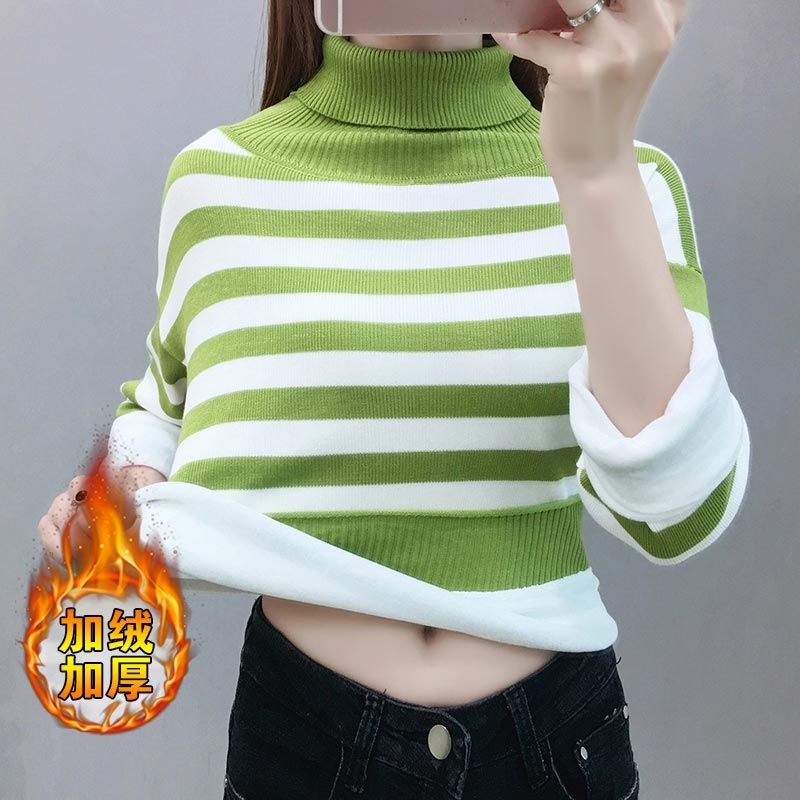 丝光棉高领加厚条纹加绒打底衫 2020年新款秋冬洋气长袖毛衣 1200件左右,50起15.8💰 💰 💰