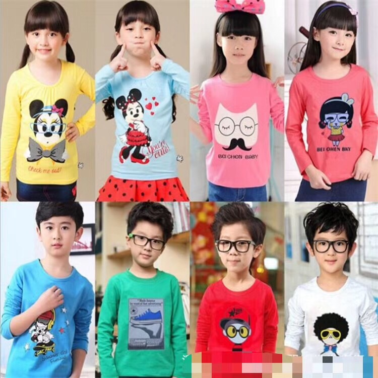 可视频看货[得意] 中小童双棉长袖T,一色三码,多色多图案,料子绝对满意,50件起批6.8💰 💰 💰
