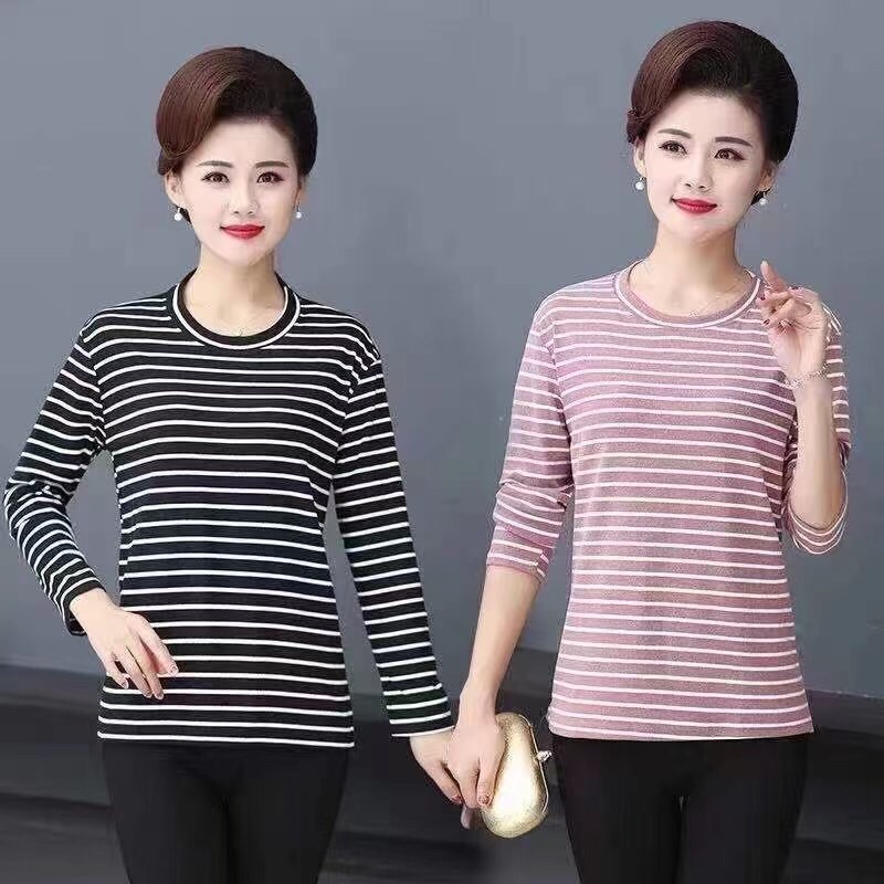 条纹女装保暖长袖T恤