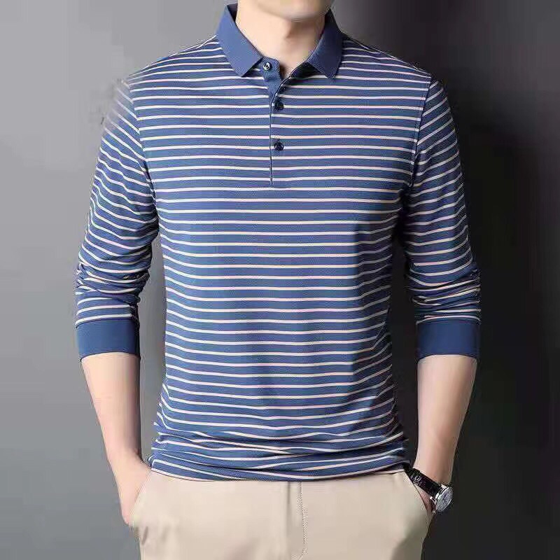 中老年男装条纹翻领长袖