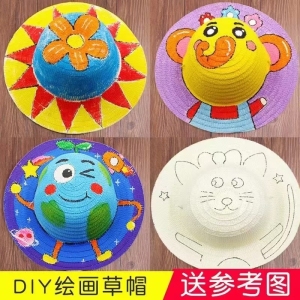 儿童diy涂鸦草帽,一个帽子➕6色颜料画笔,200套起批4.5一套,超级火爆,儿童彩绘涂鸦帽子,适合幼儿园,美术馆,儿童乐园,地摊摆摊火爆产品🔥🔥🔥