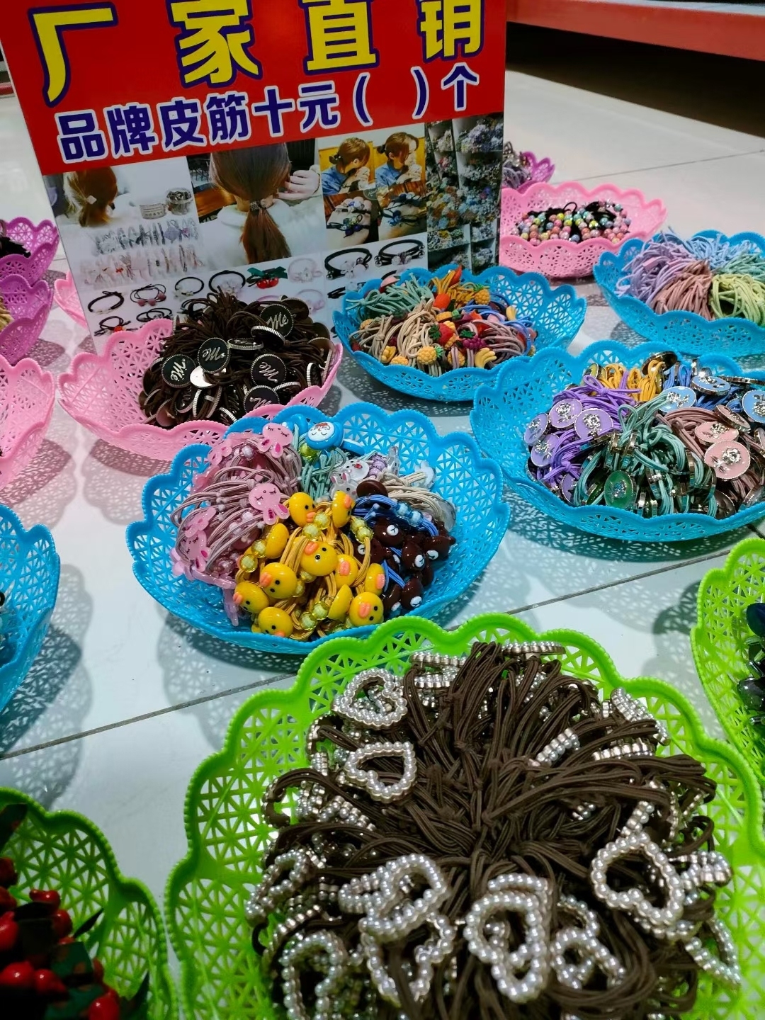 新款头绳,一元模式皮筋,头绳1套800元,包括2000个头绳20个花盘,送录音送广告牌!个个都是精品,绝无库存!