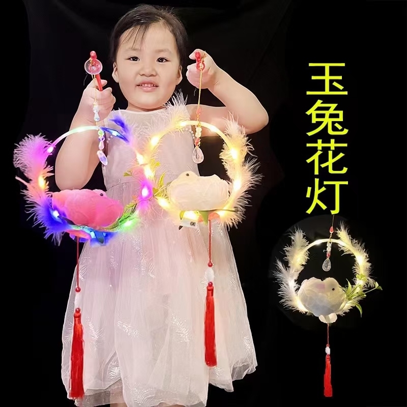 包邮免组装兔子花灯会发光的灯笼,批发8.5一个,成品,无需组装,拿到就可以卖! 配备绳子、杆子可做挂件,可当灯笼,可当道具等多功能,七彩灯光可三档调节,适合中秋节,情人节,春节,元宵节,公园,夜市,广场,旅游景区,商包邮免组装兔子花灯会发光