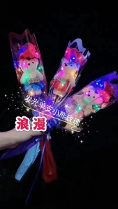 发光单支小熊香皂玫瑰花 特价批发