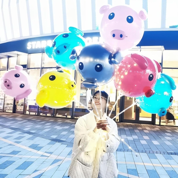 网红猪波波球摆地摊夜市手持飘空发光气球