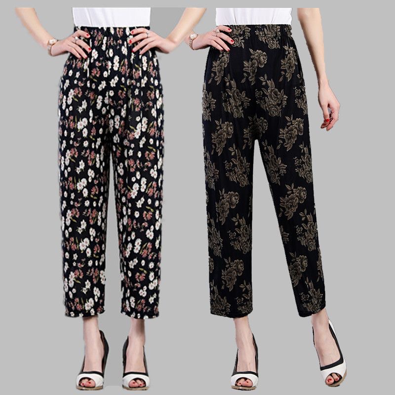 厂家批发 夏季女士防蚊裤 中老年夏季时尚宽松冰丝花单裤,50起批8.9