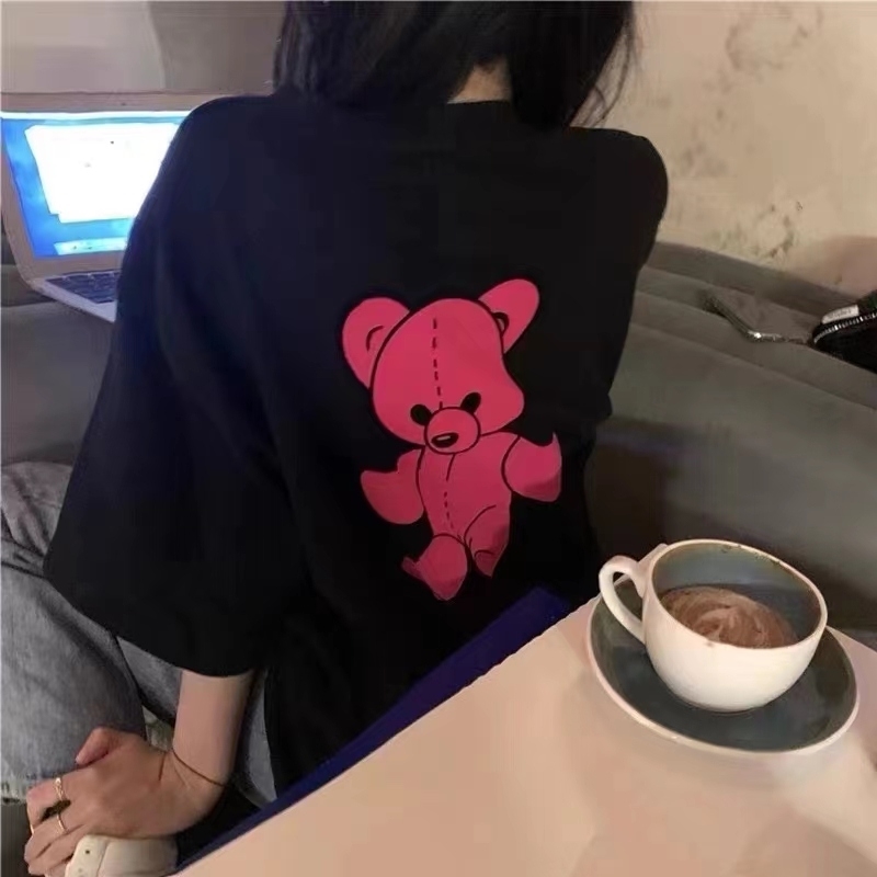 100%纯棉春夏季2021新款韩版宽松后背印花小熊圆领短袖T恤女学生 小熊🐻纯棉短袖T恤到货982件,三色三码,精品包装,便宜清货 18657970519(微信电话同步)