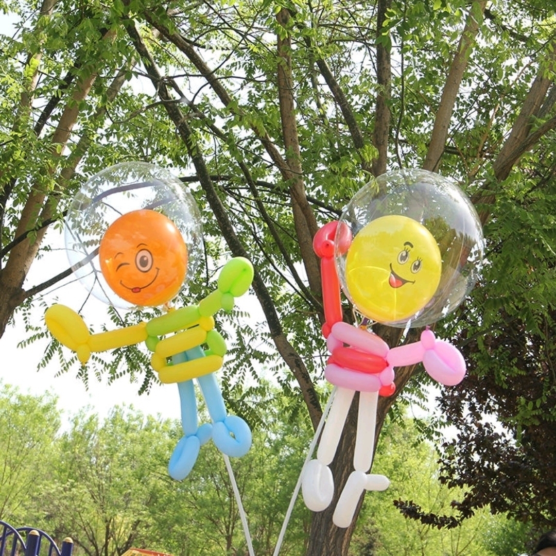 包邮网红飞天娃娃卡通气球带杆波波球飘空长条摆地摊街卖动物造型