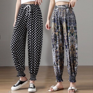 水墨画扎染冰感冰雪丝女夏季新款束脚宽松高腰垂感休闲哈伦裤批发