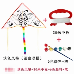 zj1-16 DIY涂鸦教学风筝。1⃣️:涂鸦风筝一套包含:风筝+8色涂料+画笔一支+30米线板。2⃣️:卡通风筝带30米线板,3⃣️:都是平纹布的材料,4⃣️:尺寸为:70X70X100厘米。涂鸦教学风筝3.8元一套,200套起批。