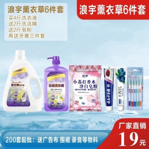 浪宇薰衣草各种日化套餐! 批发价看图片右下角!厂家直销!质量保证! 洗衣液日化家庭刚需品!下单直接发图片! 200套起批送广告布.录音.蓝牙音响.物料!