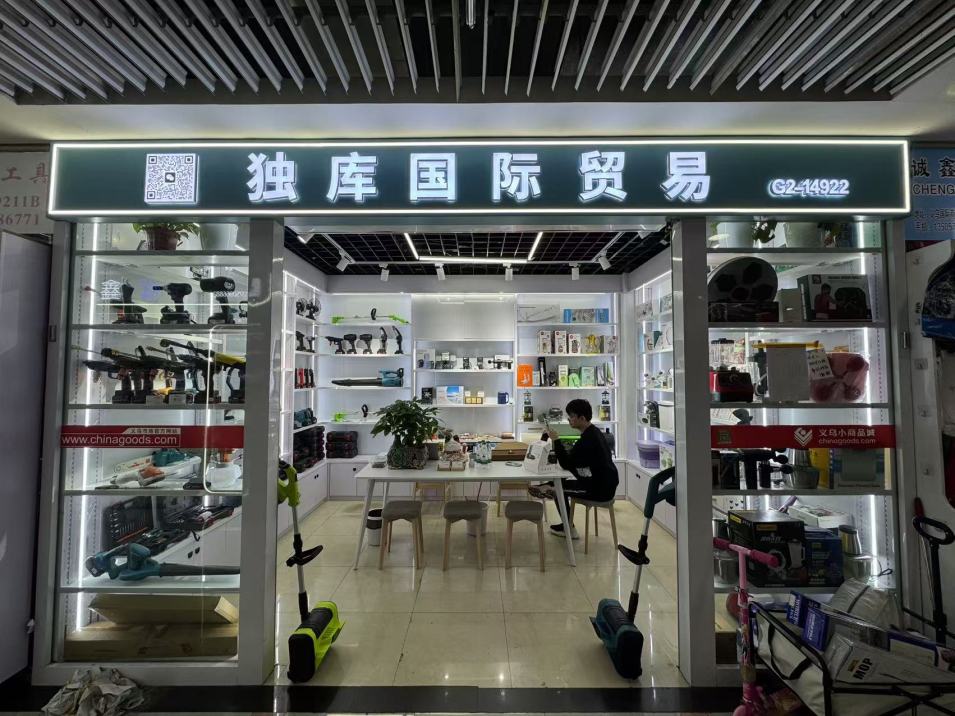 商铺介绍: 该商铺位于义乌国际商贸城二区39门2楼6街14922,经营大类: 五金工具/配件,面积: 14.0平方,主营商品: 锂电工具,园林工具,电动工具,电锯,电钻,电扳手,割草机,油锯,电剪刀,暴风机 详细