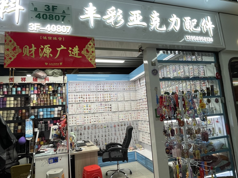 商铺介绍: 该商铺位于义乌国际商贸城四区77门3楼4街40807B,经营大类: 线带,面积: 7.0平方,主营商品: 亚克力,配件,饰品配件,钥匙圈,钥匙扣,挂件,动漫,头饰配件,发饰配件 详细