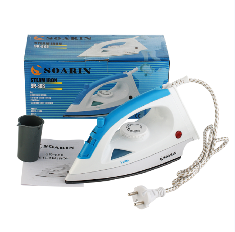 SOARIN SR-808钢板 这是一款蒸汽型家用电熨斗,底板采用不锈钢材质,简洁的外观设计与高品质的内在质量,欢迎各外贸采购商来电来函洽谈!