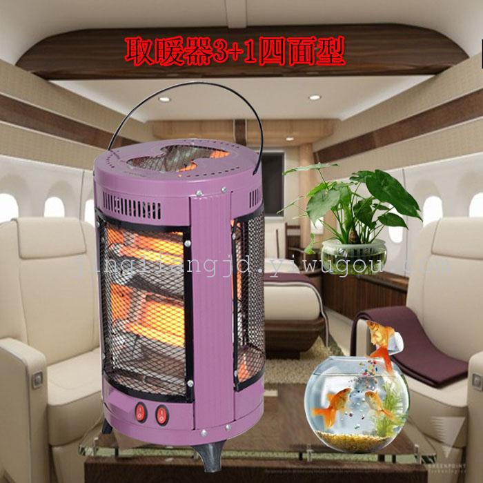 取暖器3+1四面采用金属制作而成,颜色为白色、紫色,外形为圆柱形设计,中间为网状。圆形四面取暖器具有无极调温,自动控温取暖效果好,三个面加顶部都有热源,开关独立,每个面都有特定的开关,不用的散热面可以关闭,适合一家人用,功率可任意调节。圆形四面取暖器的顶部做有手柄,拿放更加便捷,并安装着插电线。圆形四面取暖器适用于家庭、宾馆、办公室等场合取暖用。该产品有英文彩盒,畅销于各个国家 俄罗斯 阿塞拜疆 阿富汗 巴基斯坦 叙利亚 利比亚 印度等多个国家 欢迎新老客户前来订购定做
