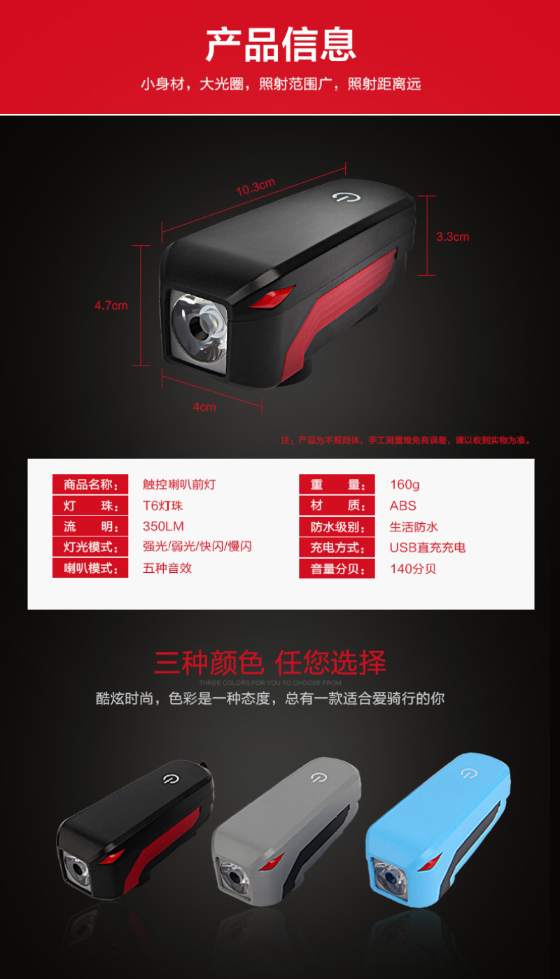 【品名】USB充电触控式喇叭+前灯
