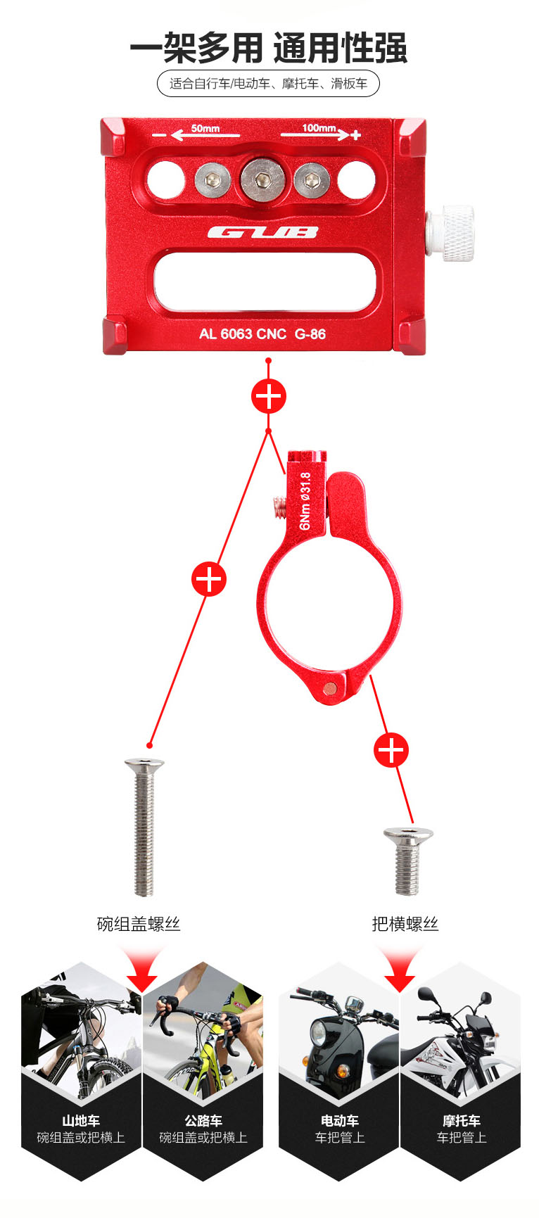 GUB铝合金单车自行车手机支架山地公路电瓶电动车架导航夹