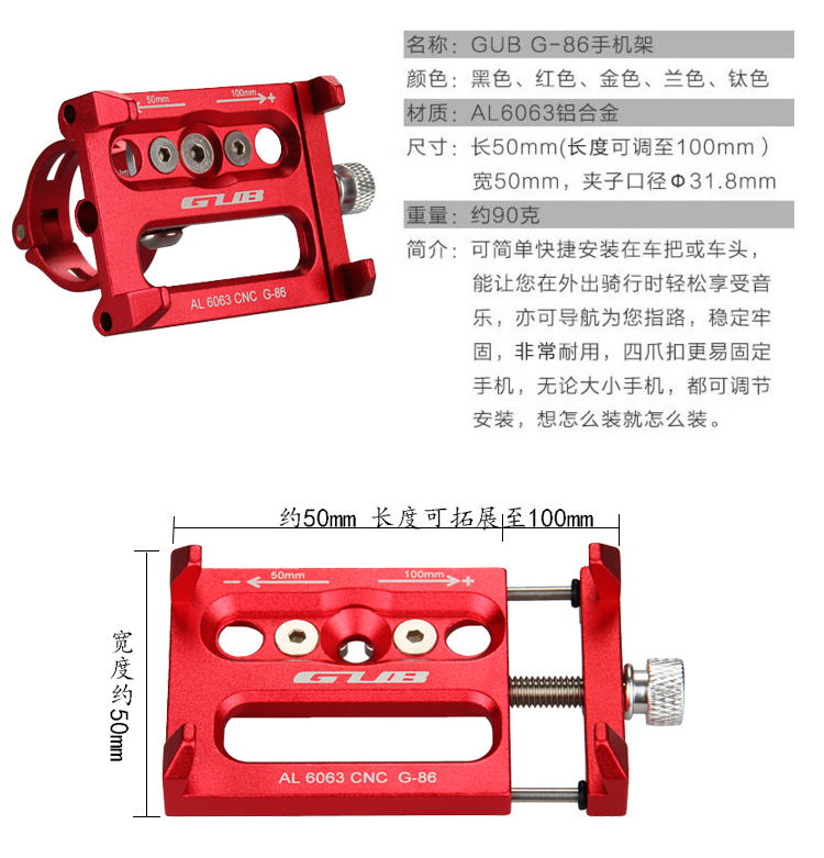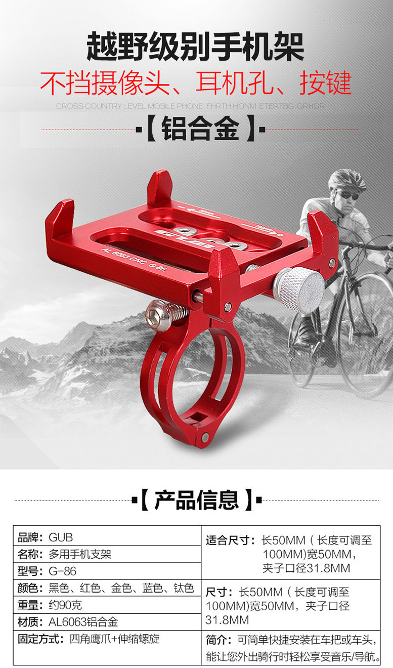 GUB铝合金单车自行车手机支架山地公路电瓶电动车架导航夹 投诉