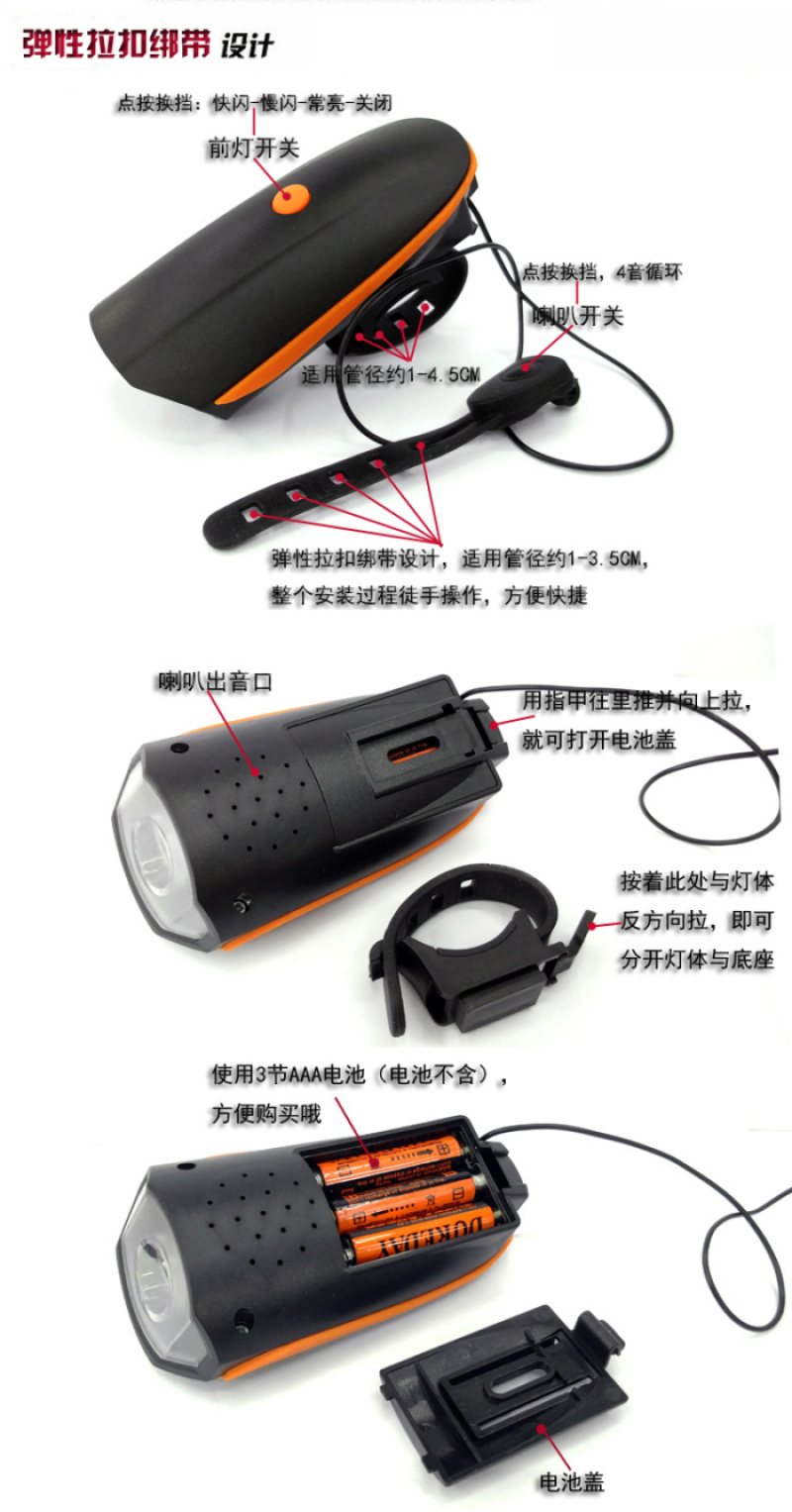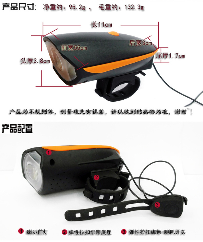 【型号】:FY-056自行车喇叭前灯 车灯+喇叭