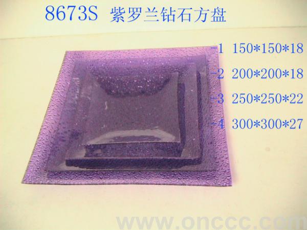 8673S紫罗兰色钻石套四玻璃果盘规格有:100*100mm(装箱数192PCS) 120*120mm(装箱数192PCS) 150x150mm(装箱数144PCS),200*200mm(装箱数72PCS),250x250mm(装箱数60PCS),300x300mm(装箱数36PCS). 还有以下造形和规格: