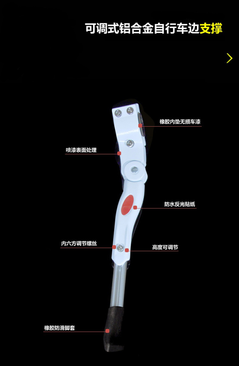 ●长短可调,车型:24"-700C.部分折叠车,16"-20"车同样可使用,需要裁短下支撑杆.