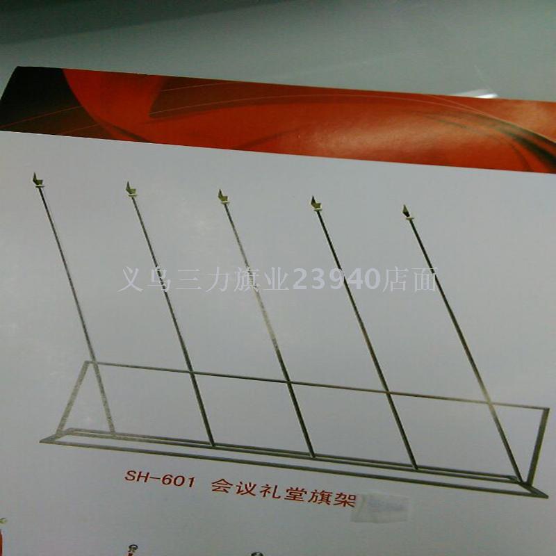 人民大会堂会议旗架6米*80*3米高.室内落地厅旗架【规格】:3米高度,左右10根杆子。适合搭配1号旗帜。材料】:银色不锈钢,顶端有个枪尖头。