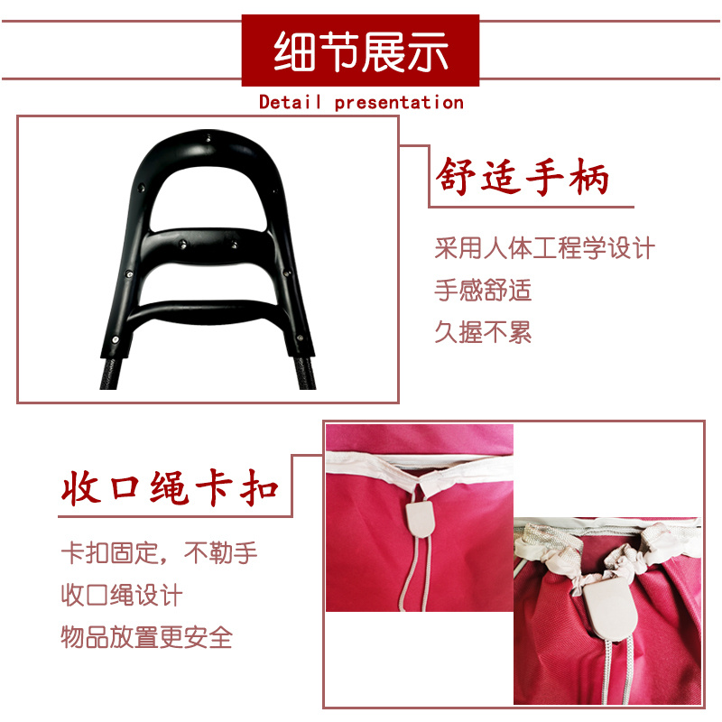 款式多,质量好,发货快。超大布袋空间,外观时尚大方,色泽鲜艳,安装简便包包可以随时取下清洗。包包购物车。外出购物、旅游购物,内在外在的设计都非常优秀!配色扶手,用力舒适 在国外,拖着可爱的购物车去 购物已经成为了一种时尚放东西更加方便,色泽亮丽,亮丽不褪色、不生锈
