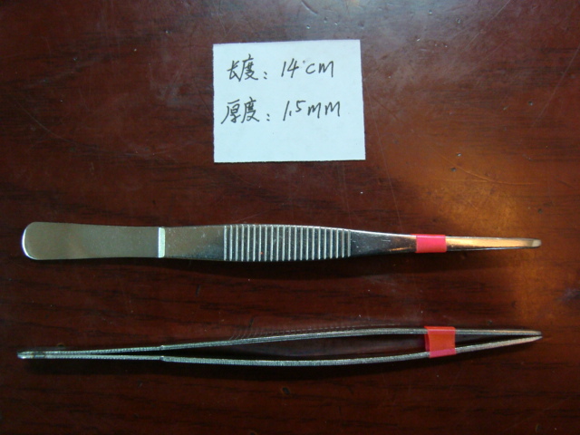 我们厂生产的不锈钢镊子尺寸很多的,这款镊子长度:14厘米,镊子的厚度1.5MM,10支一排,用opp袋子隔开包装起来,一个箱子2000支,一箱起定,欢迎有需要的商家前来采购,价格优惠,发货快,产品型号:SD2207