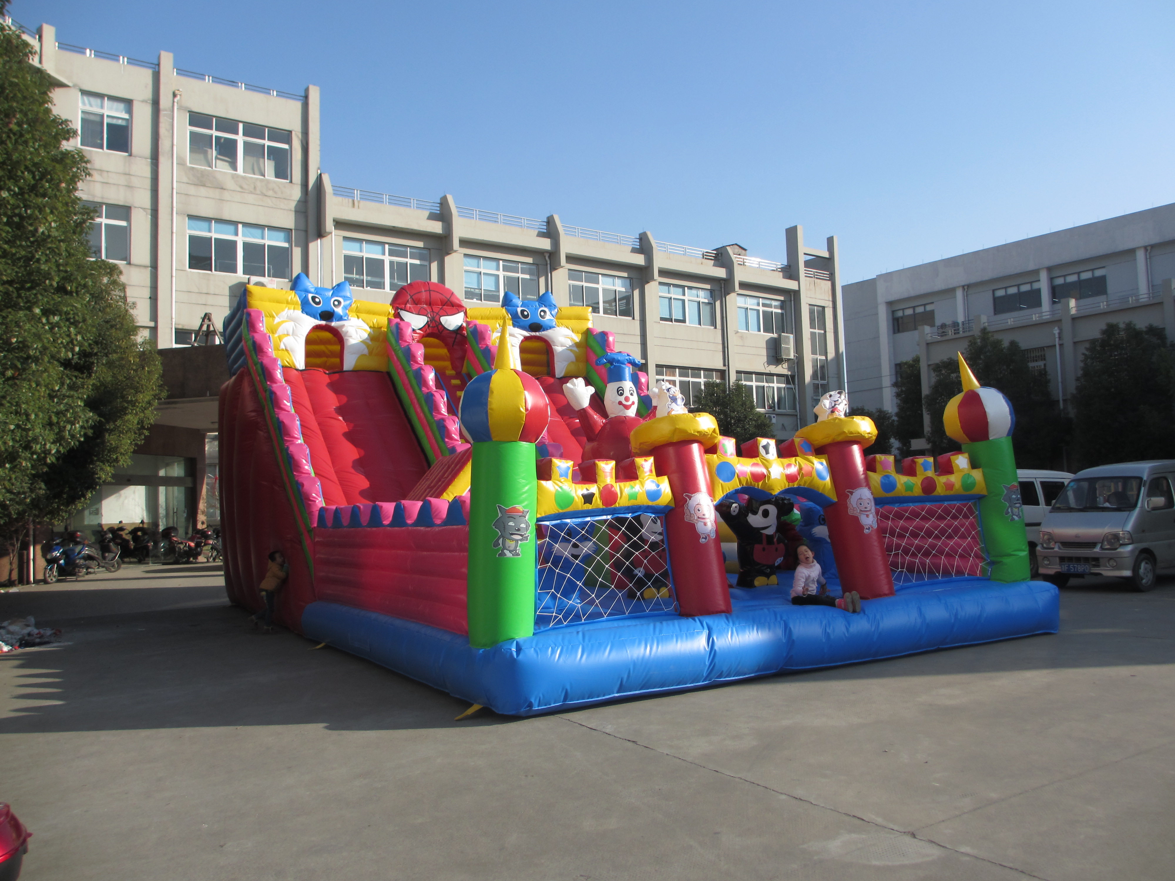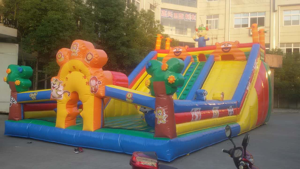 充气娱乐城游乐园属新一代的儿童娱乐设施,根据儿童的特性设计,现已发展成,可内含滑梯、攀岩、障碍、通道、各式各样的动物卡通造型等,有丰富的娱乐元素,深受孩子们的喜爱。它具有安全性、综合性、可观赏性、新颖性,色彩鲜明,经久耐用通过科学的立体组合,采用超强的防水布制作而成,这是一种综合性极强的娱乐乐园。游乐儿童通过翻、滚、爬、摇、晃、跳、钻等新奇的活动方式,达到开发智力,锻炼身体,愉悦身心的目的。