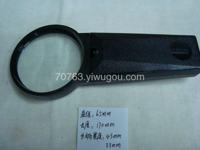 这是一款带灯的放大镜,外壳用黑色的ABS塑料做成,镜片用玻璃,不易磨损表面,经久耐用,放大4倍,电池用2节5号的普通电池,放大镜的尺寸:直径65mm,整个长度170mm,手柄宽度:43mm,底部33mm,手柄的厚度:20mm,产品单和盒子包装,一个箱子400个,一箱起定,欢迎有需要的商家前来采购,价格优惠,发货快,产品型号:SD613