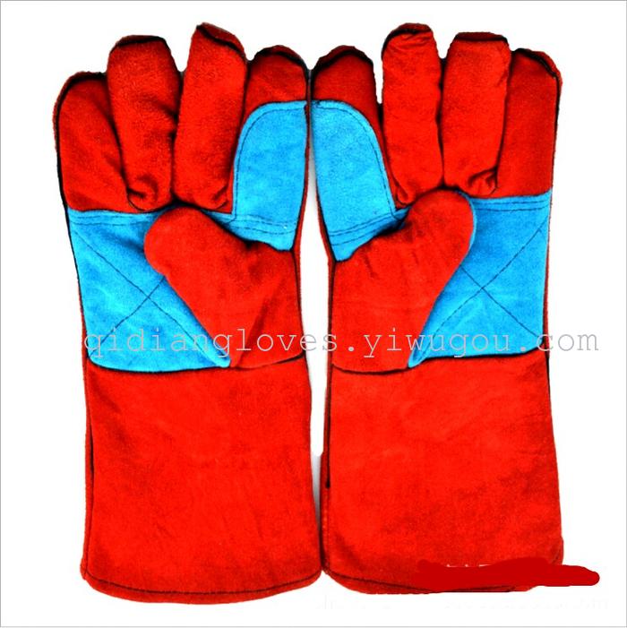 14电焊劳保专用手套,加拖电焊手套 劳保手套 牛皮劳保手套双层加托电焊手套 安全劳保手套焊工手套