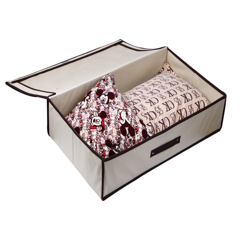 此产品为无纺布材质带纸板,规格为45*30*20cm。本产品可用于各种杂物的整理和存放,适用于衣物,玩具,被子等零碎物品。装箱数24个/件