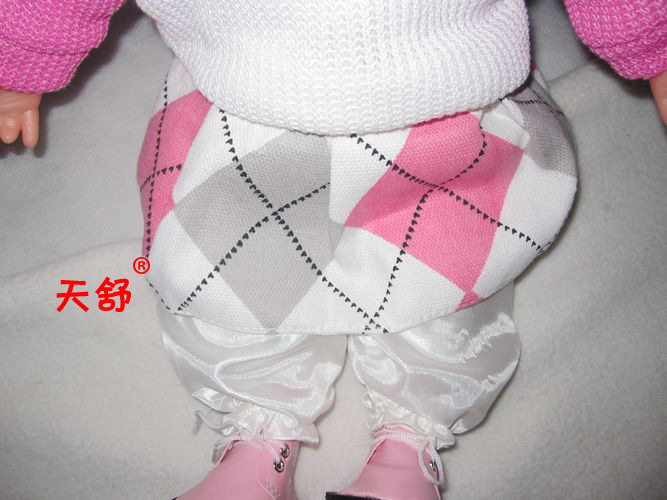 【说明】: 装可随意脱下清洗,能使您的宝宝时刻保持干净,同时亦可为娃娃设计搭配各种不同的衣服,个性化您的娃娃.手臂、腿、胫部均可以转动. 厂玩具薄利多销,我们给大家的承诺就是绝对保证每个产品的质量,用心做好每一个客户。