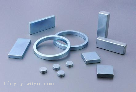 第三代稀土永磁钕铁硼是当代磁铁中性能强的永磁铁。其潜在的磁性能极高,能吸起相当于自身重量千倍的重物。钕铁硼磁铁的机械性能较其它磁铁要好,更易于切割和钻孔及复杂形状加工。其不足之处是温度性能不佳,在高温下使用磁损失较大,最高工作温度较低。一般为80摄氏度左右,在经过特殊处理后,其最高工作温度可达200摄氏度。由于材料中含有大量的钕和铁,故容易锈蚀也是它的一大弱点。所以钕铁硼磁铁必须进行表面涂层处理。可电镀镍(Ni),锌(Zn),金(Au),铬(Cr),环氧树脂(Epoxy)等。