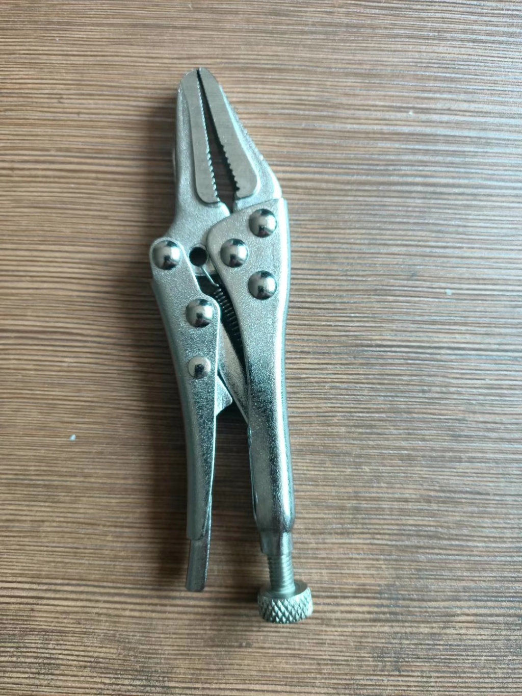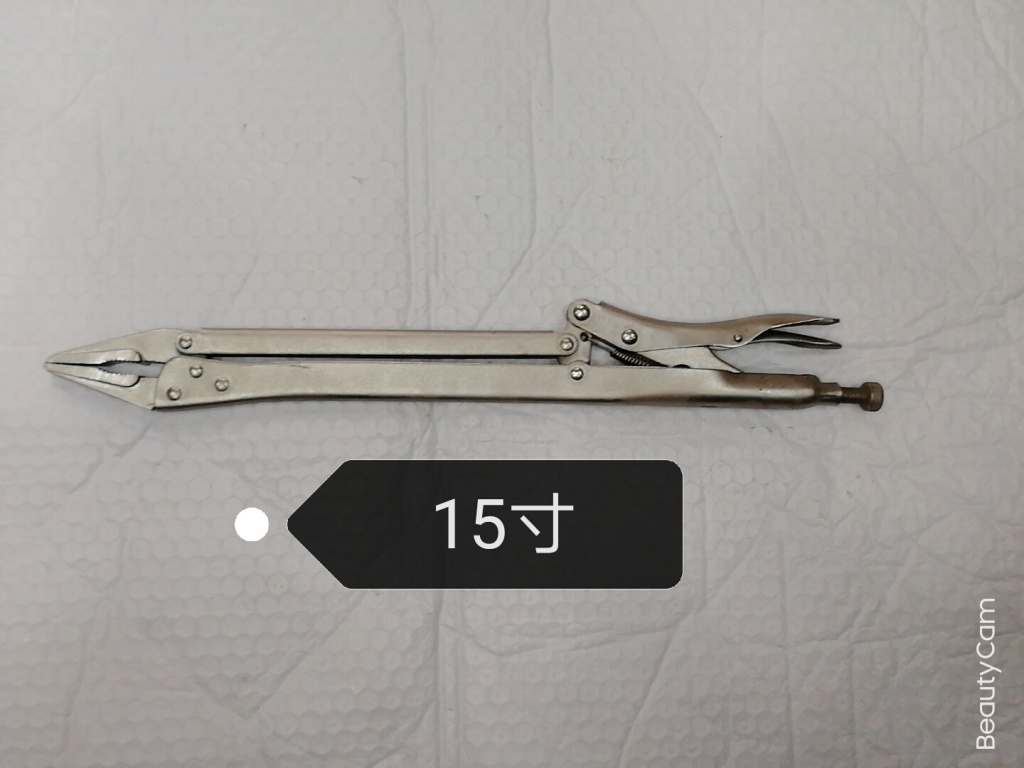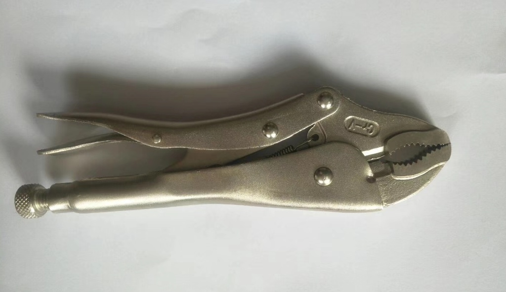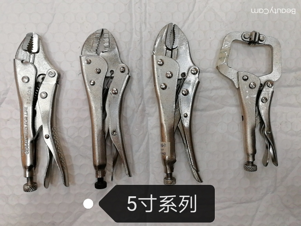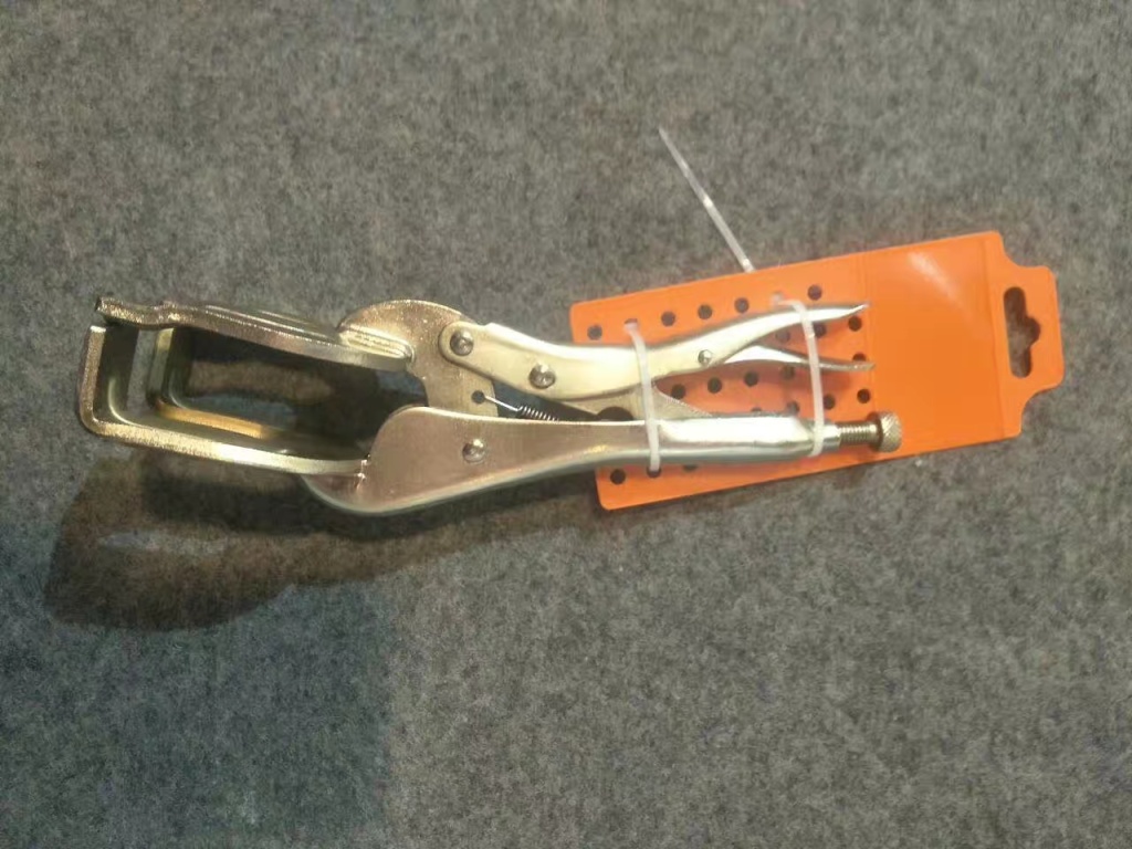 主要用于夹持零件进行铆接,焊接,磨削等加工.其特点是钳口可以锁紧并产生很大的夹紧力,使被夹紧零件不会松脱,而且钳口有很多档调节位置,供夹紧不同厚度零件使用。另外也可作扳手使用 。分5钉普通型和3钉重型。常规尺寸有5寸7寸10寸。头部有圆嘴 葫芦嘴 尖嘴 直嘴 直角嘴和各种异型嘴 包装有半泡 .全泡.绑卡和插卡。表面处理有电泳.磷化和电镀。