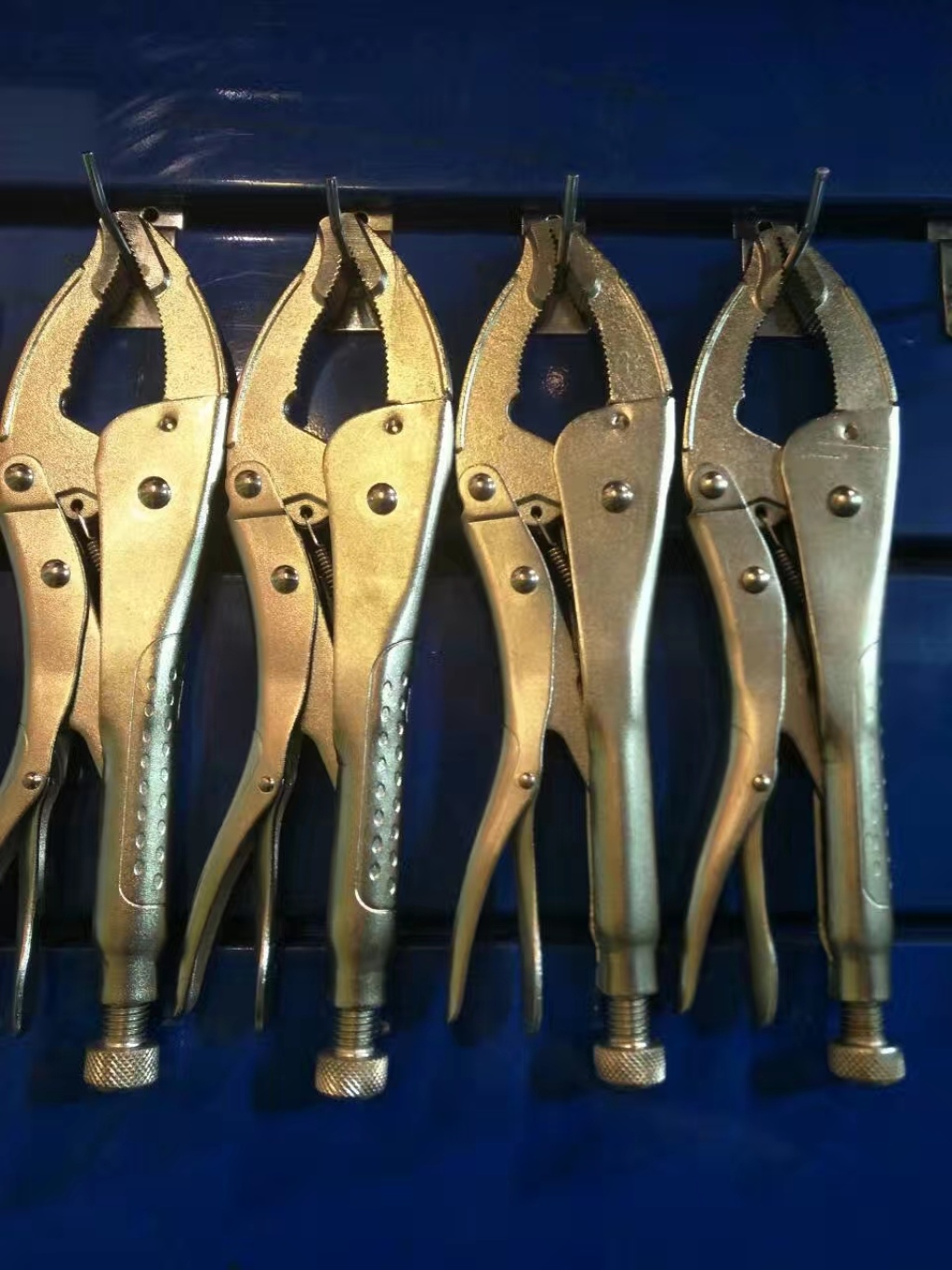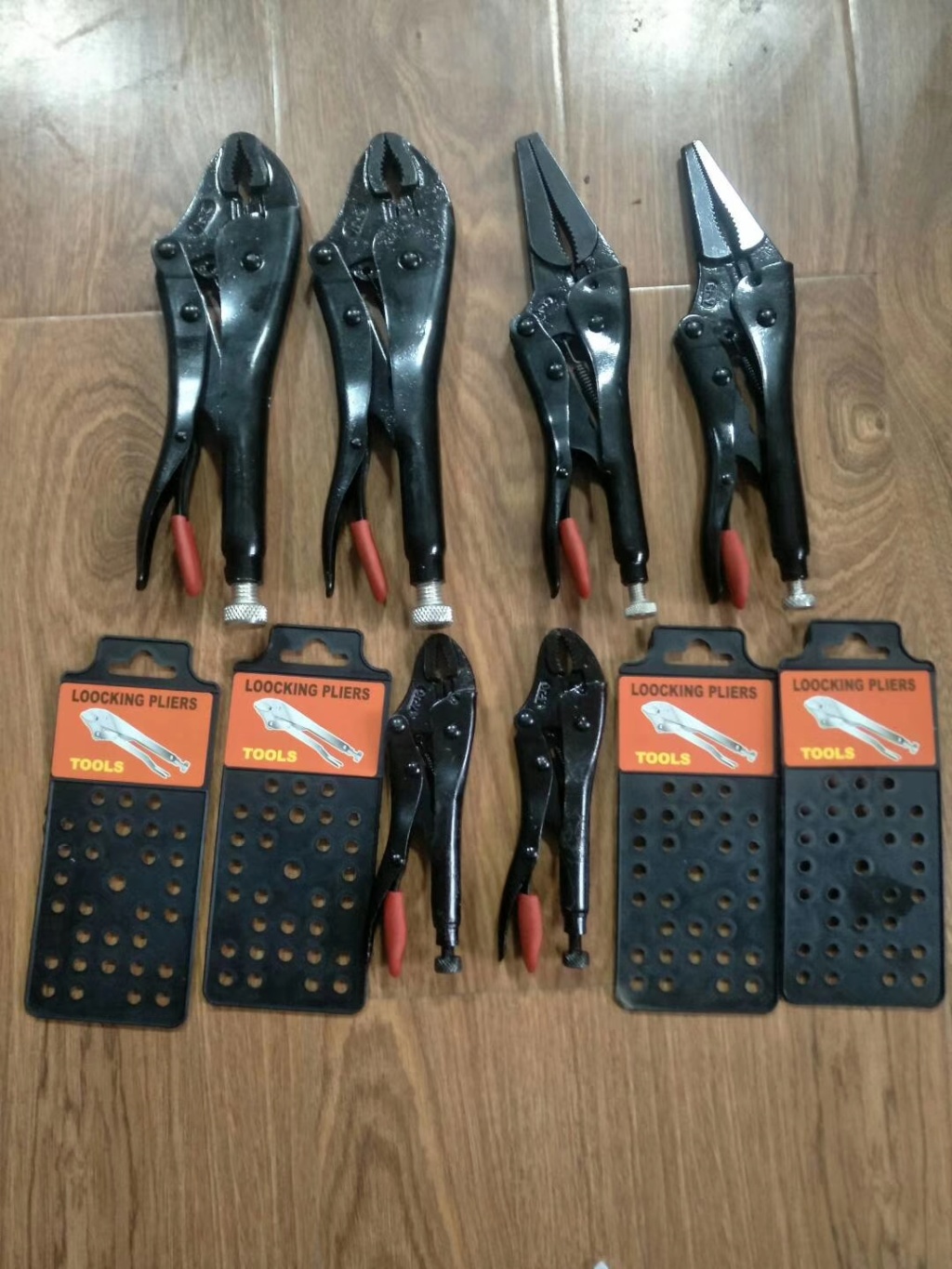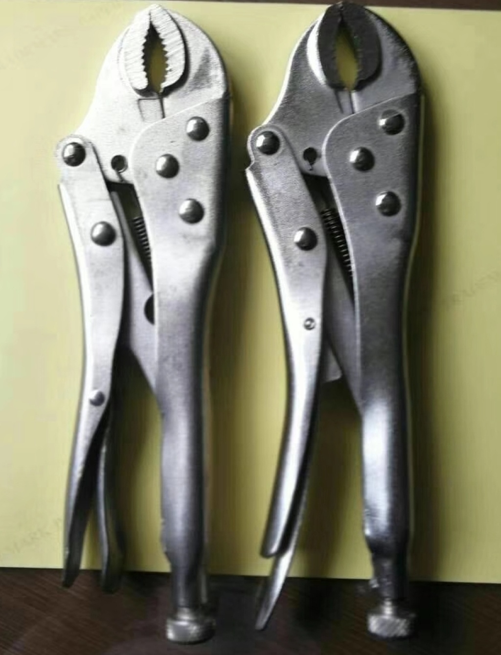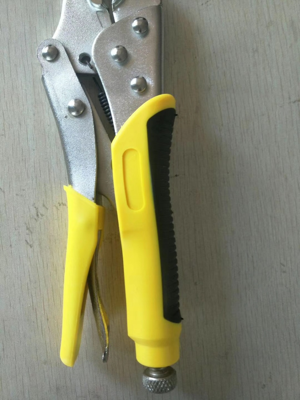 主要用于夹持零件进行铆接,焊接,磨削等加工.其特点是钳口可以锁紧并产生很大的夹紧力,使被夹紧零件不会松脱,而且钳口有很多档调节位置,供夹紧不同厚度零件使用。另外也可作扳手使用 。分5钉普通型和3钉重型。常规尺寸有5寸7寸10寸。头部有圆嘴 葫芦嘴 尖嘴 直嘴 直角嘴和各种异型嘴 包装有半泡 .全泡.绑卡和插卡。表面处理有电泳.磷化和电镀。