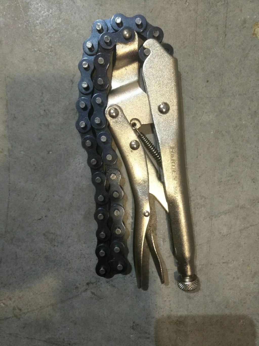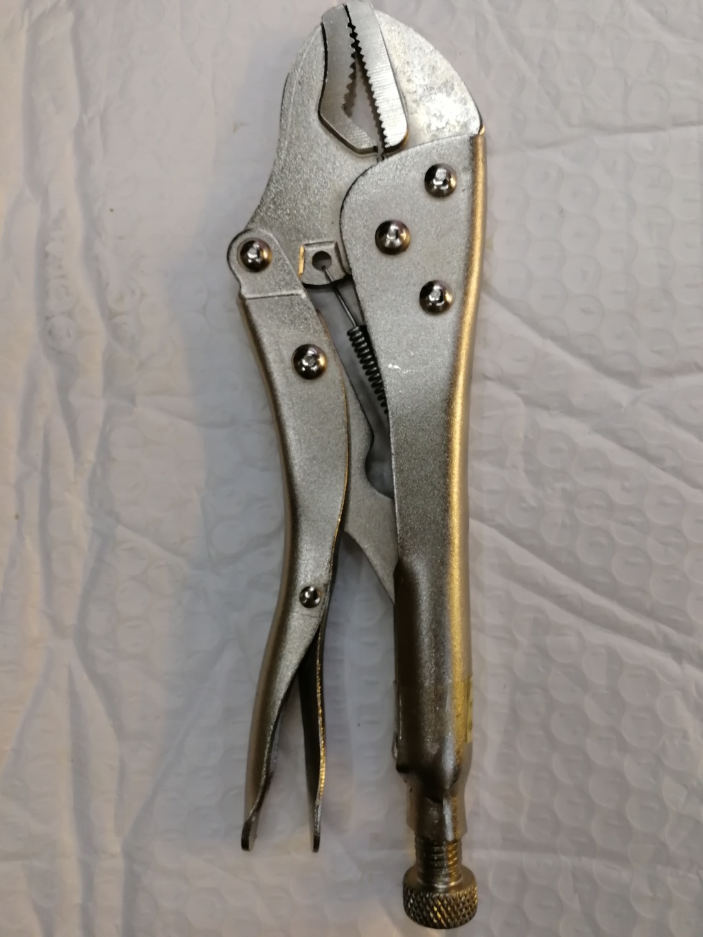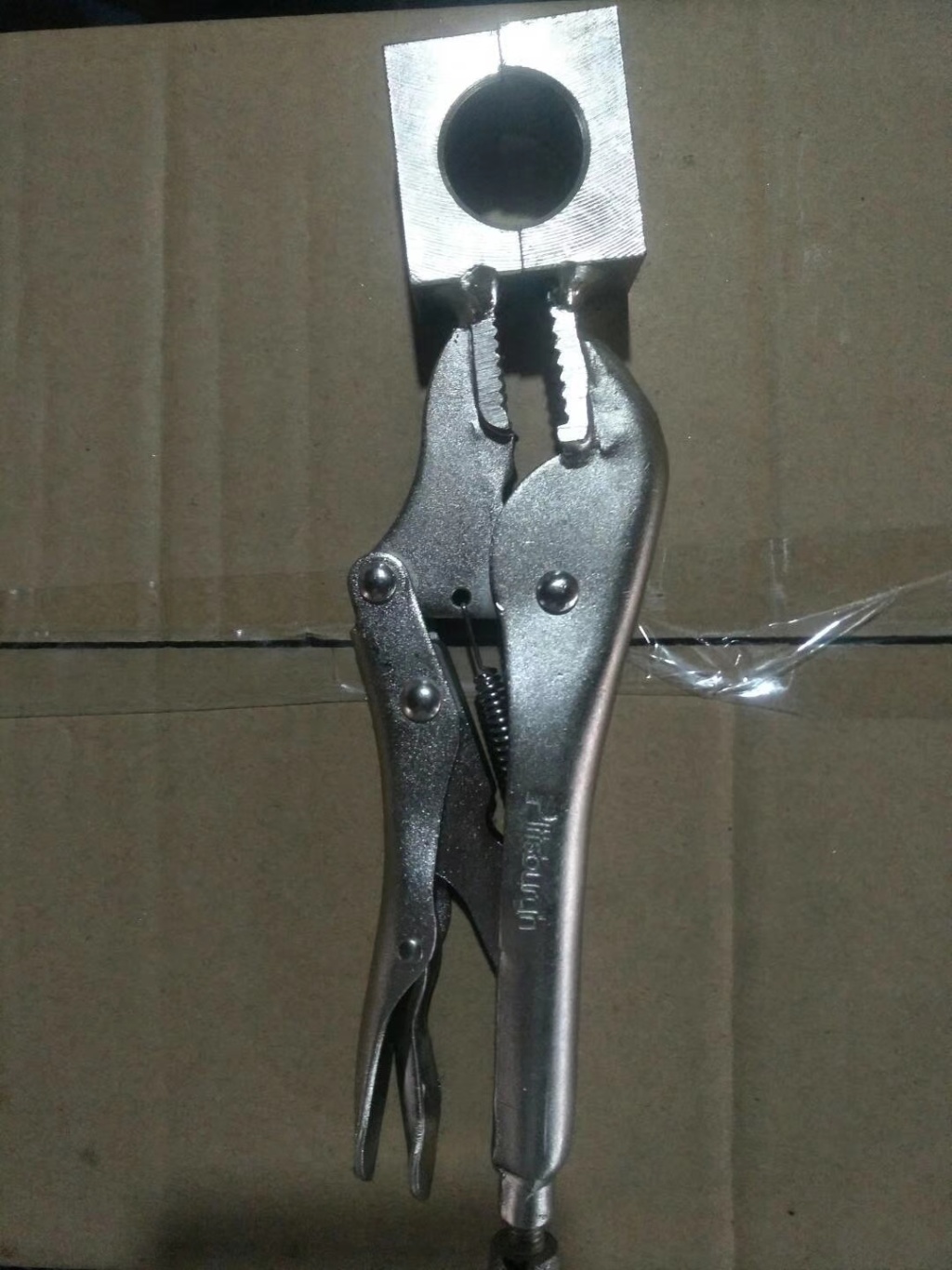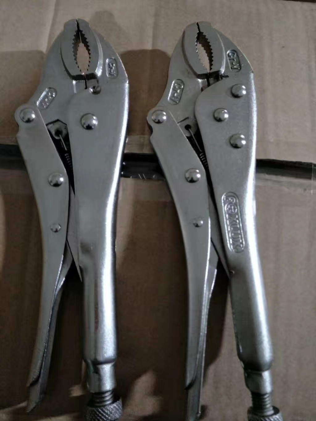 主要用于夹持零件进行铆接,焊接,磨削等加工.其特点是钳口可以锁紧并产生很大的夹紧力,使被夹紧零件不会松脱,而且钳口有很多档调节位置,供夹紧不同厚度零件使用。另外也可作扳手使用 。分5钉普通型和3钉重型。常规尺寸有5寸7寸10寸。头部有圆嘴 葫芦嘴 尖嘴 直嘴 直角嘴和各种异型嘴 包装有半泡 .全泡.绑卡和插卡。表面处理有电泳.磷化和电镀。