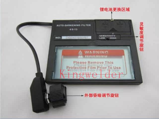 头戴的光控电焊面罩特别适合双手操作的逆变氩弧焊作业,适用于TIG/ MIG/ MAG以及所有电弧焊作业,产品技术先进,适用面广,适应性强,性价比高。这款HC-1110cg自动遮光电焊面罩,镜片尺寸为110X90m,视窗为98X43mm。本产品采用太阳能电池和可更换式锂电池,响应速度0.1ms,延时恢复时间根据焊接方式自动调节(0.2-0.7秒),带有灵敏度调节,还可以适用小电流10A焊接场合,使用方便。明态遮光号为4,暗态遮光号调节范围在9-13。紫外线,红外线透过率等防护指标均优于美国ANSI Z87.1-2003标准,产品全部出口。我们的宗旨是:以优良的产品,合理的价格和满意的服务赢得市场和客户,欢迎各外贸公司来电来函联系。