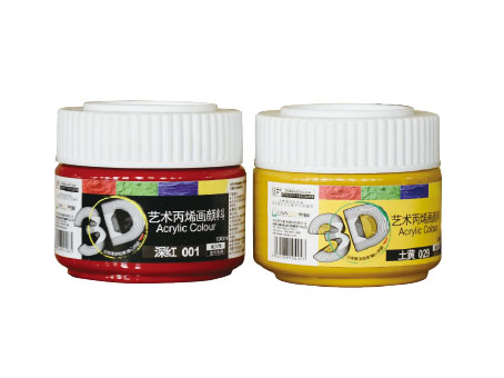 3D艺术丙烯普通色:朱红、灰色、白色、黑色、土红、土黄、赭石、熟褐、生褐、深红、桔红、紫红、永固红、柠檬黄、淡黄、桔黄、深黄、湖蓝、天蓝、普蓝、酞青蓝、钴蓝、紫色、翠绿、酞青绿、草绿、粉绿、中绿、深绿、淡绿、黄绿、橄榄绿、浅绿、群青、青莲、玫瑰红、肉色、沙普绿、中黄、大红