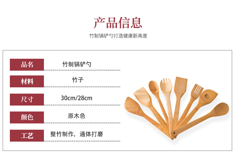 竹筒5件套装里面有竹铲竹勺,品种齐全,纯正天然,环保,不伤锅,用于拌沙拉等等,是你烹饪的好帮手。