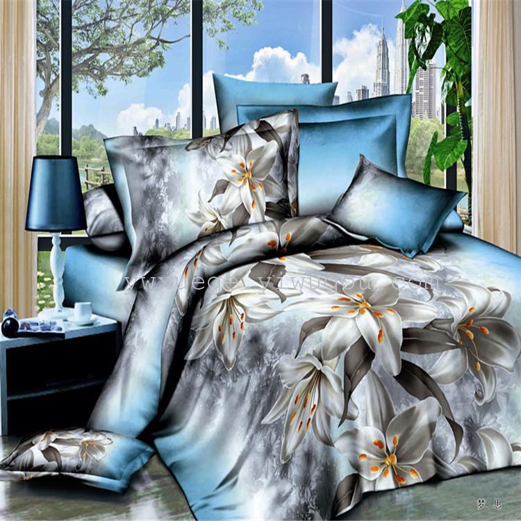 ●产品名称: 3D活性分散印花四件套 ●产品质地:100%聚酯纤维,活性绿色印染,柔软舒适,厂家直接供货, 真正