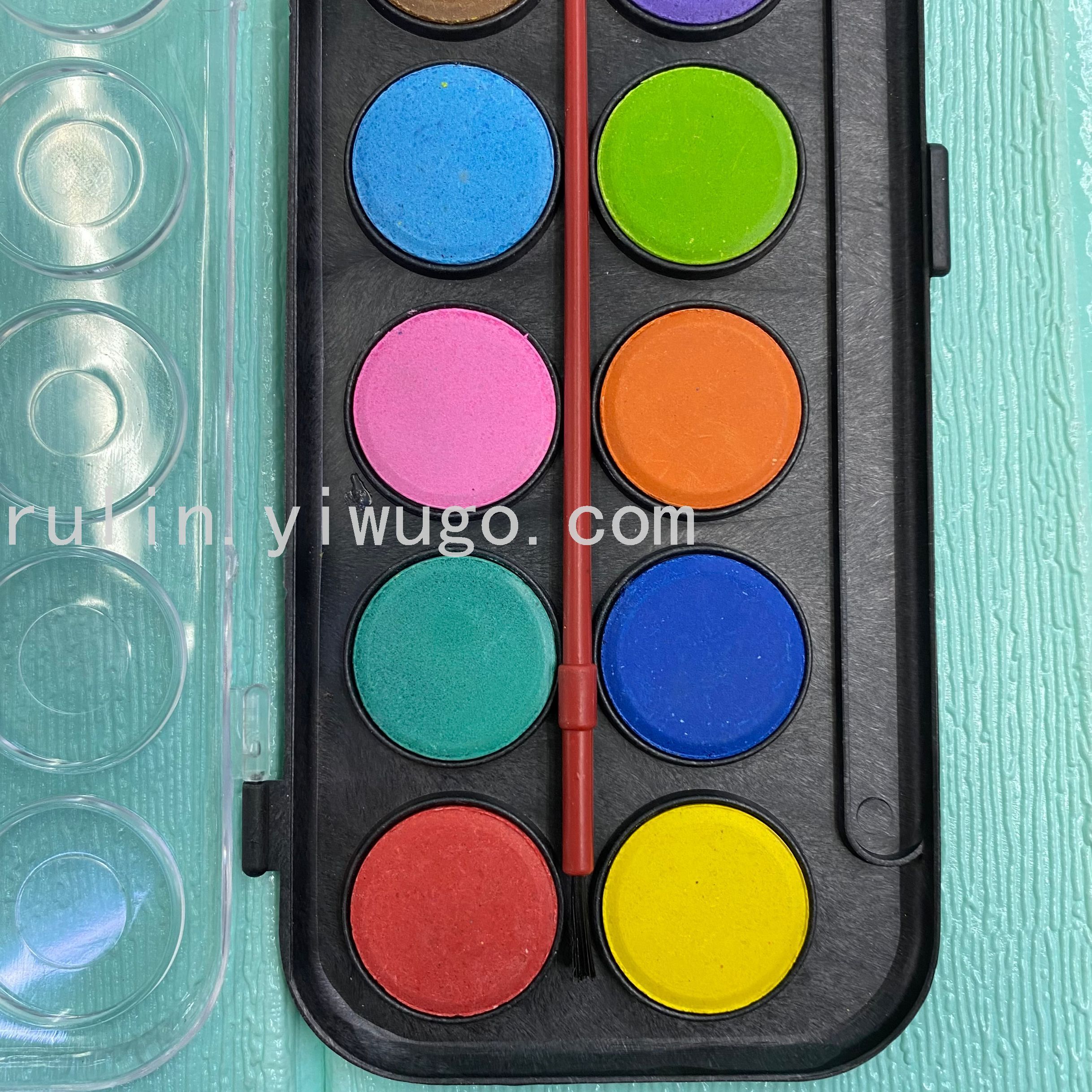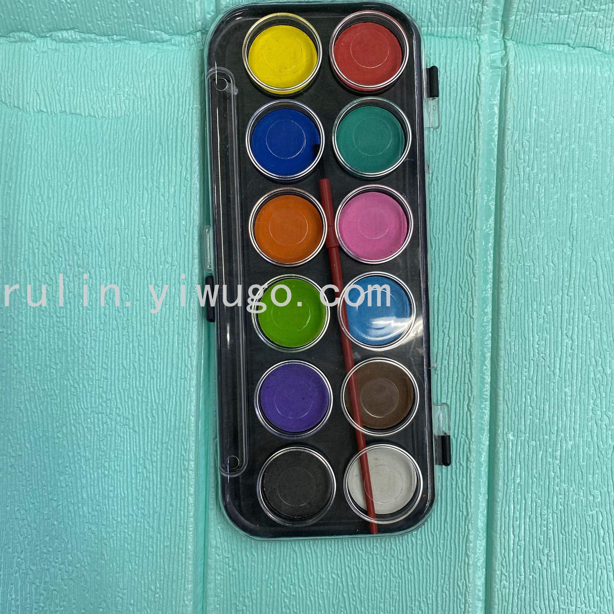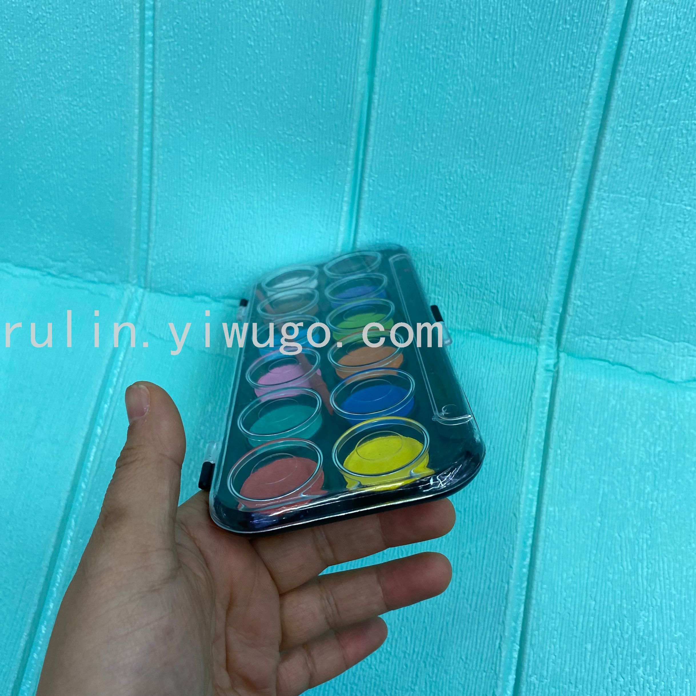 【 功能描述】12色粉饼水彩,附画笔。调色盘设计即画即用.