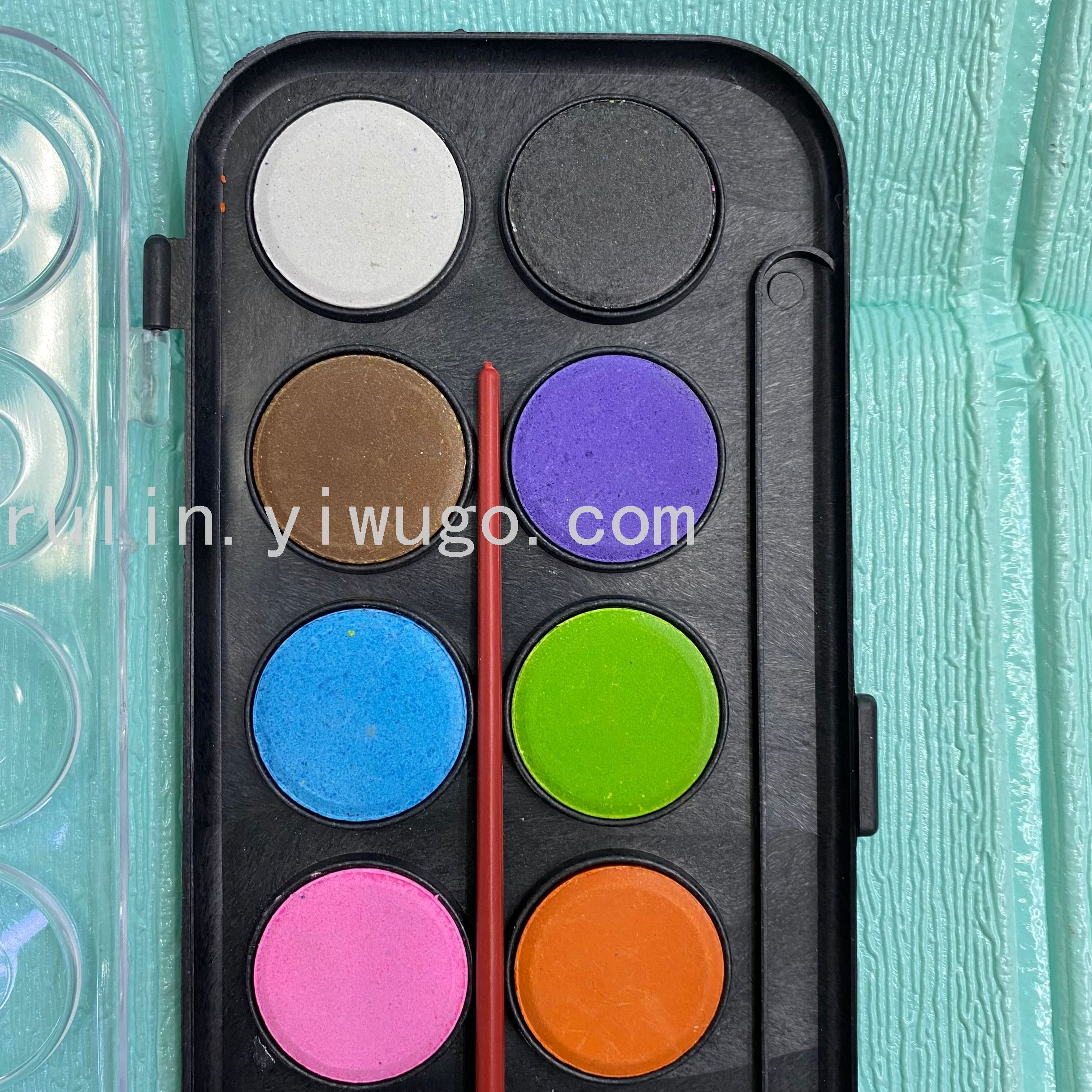 【使用方法】取水彩笔用水将粉饼沾湿,待粉饼化开,即可进行调色,绘画。