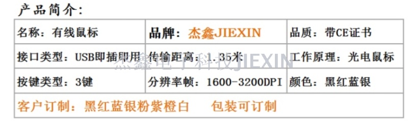6D6键专业游戏USB有线镭雕七彩色透光高端礼品鼠标001/