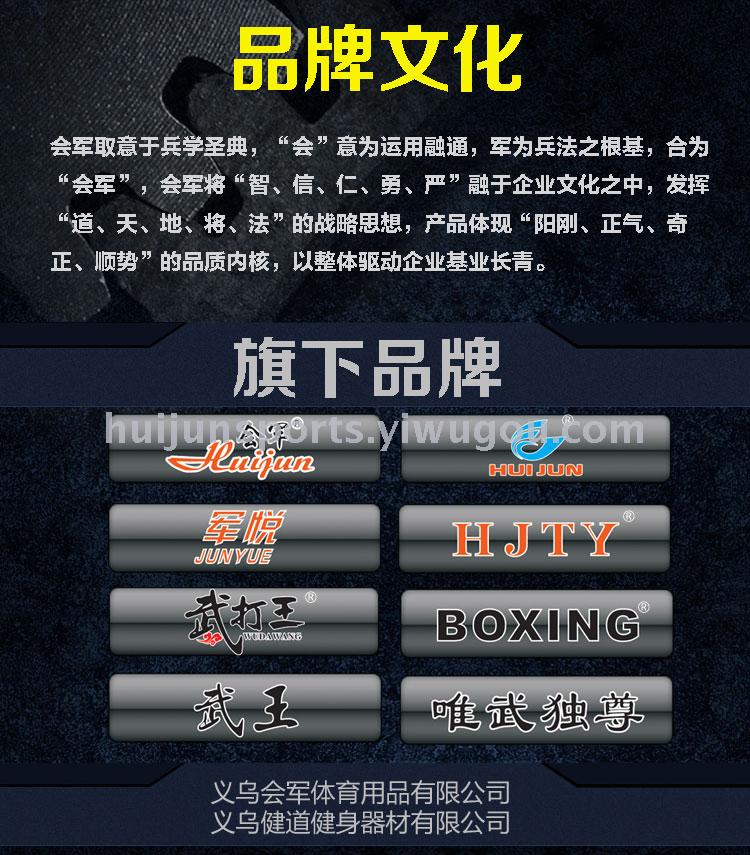 公司简介 中国.义乌会军体育用品中心成立于2002年,会军集互联网+营销、贸易、联合制造于一体,采用规模化经营、规范化管理的集团运作模式。总部设在义乌国际商务中心,下设义乌国际商贸城七个直营店、义乌会军体育用品有限公司、浙江会军进出口有限公司、义乌健道健身器材有限公司、迪拜会军体育用品股份有限公司。联合生产基地分别建在浙江、福建、河北、山东等地。 会军秉承“合作共赢、共同发展”的经营理念,现生产经营体育用品十大类、一万五千多个品种,可以满足不同场地不同人群的健身需求。已成为中国体育用品集散中心、体育用品出口基地,全民健身运动领跑者。产品销往全国各地及世界多个国家和地区。 会军先后荣获中国健身器材十大品牌、中国武术用品十大品牌、中国智能跑步机十大品牌、全国健身器材行业质量领先品牌、全国质量诚信先进企业、全国产品和服务质量诚信示范企业。 会军人发挥合作、务实、高效、创新的企业精神,以最强大的凝聚力和创造力在商海中开辟了一条属于自己的航道,独立潮头,引领行业发展。 会军体育核心价值:联合千个厂家万家客户共建中国体育产业联合营销平台、中国体育用品出口基地、体育用品一站式采购中心。创幸福企业,建快乐团队,推广全民健身,让世界各地人使用会军的产品,让人生活更幸福! 会军体育全体同仁诚邀您的加盟!更新时间:2018-05-30 15:25