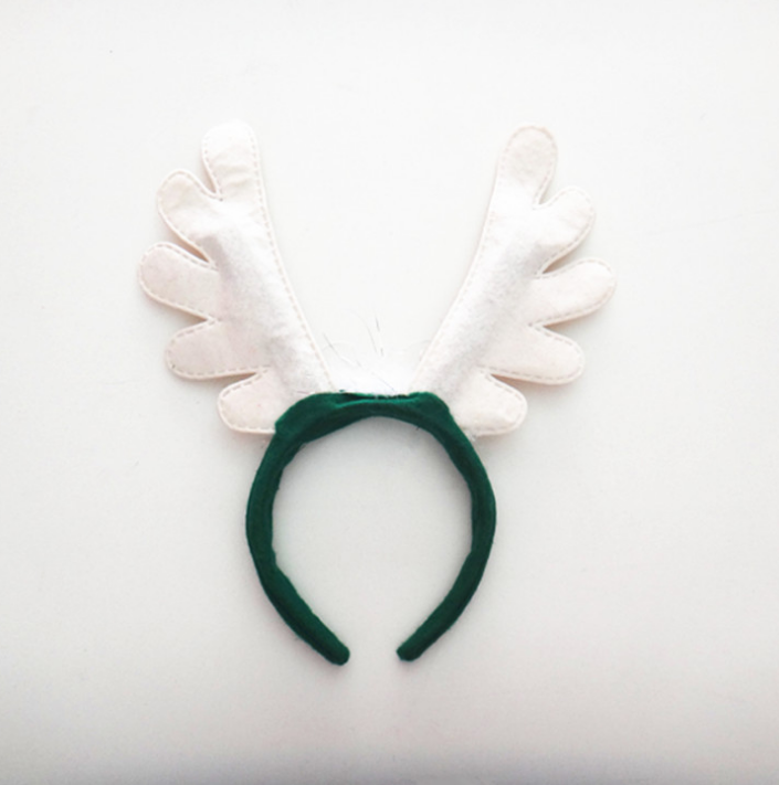 【组合】:绿布包箍+简约白布鹿角+塑料骨架+羽毛小铃=鹿角头箍