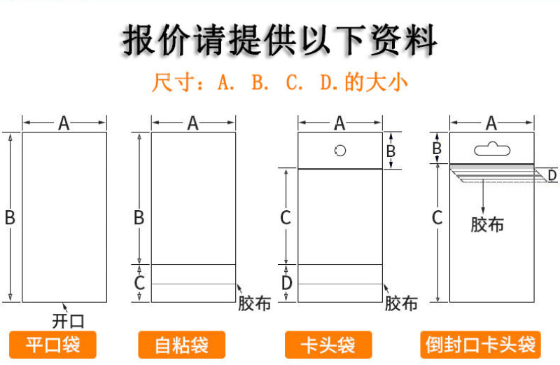 所有袋子的总长,即平铺尺寸,实际长度要比总长少3-5cm左右,即干胶折回来的部分约3-5cm的样子。
