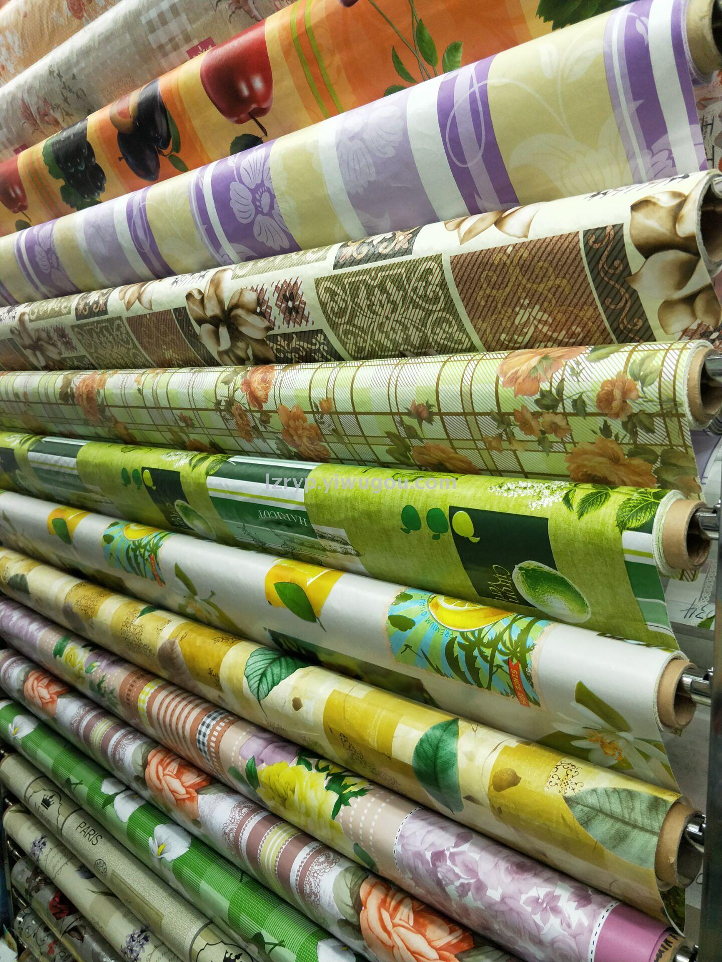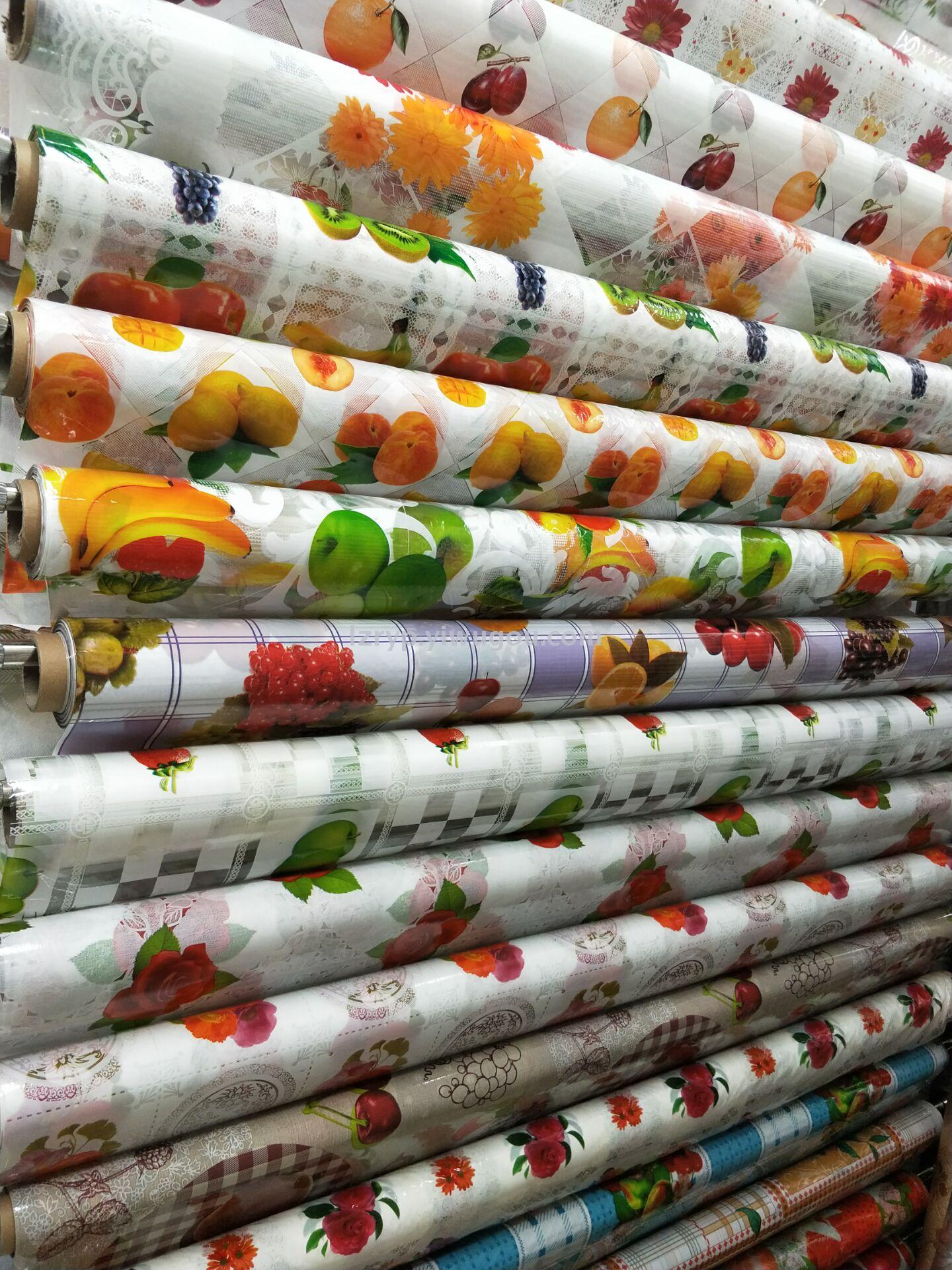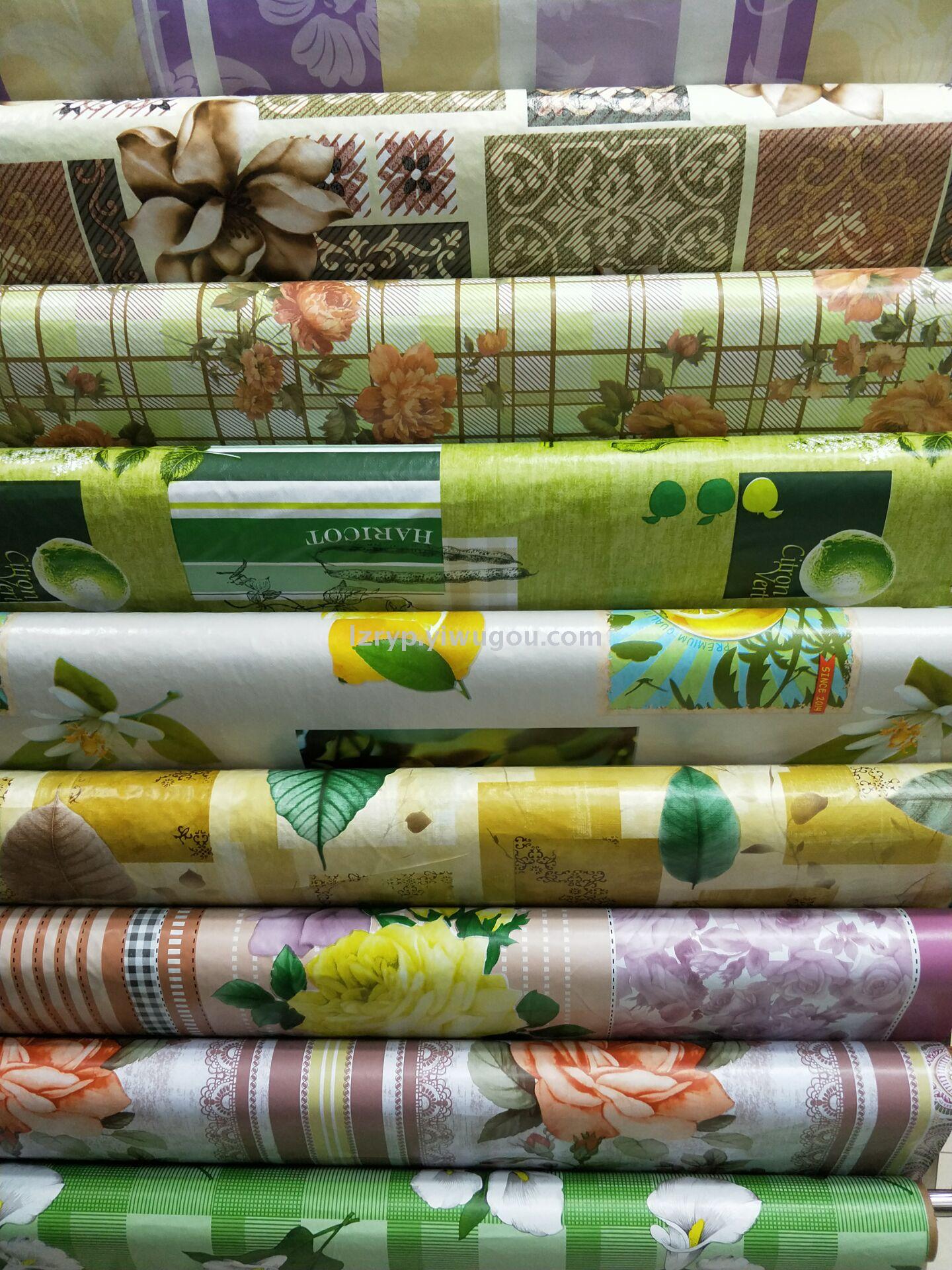 桌布,台布,PVC透明印花及白膜复合无纺布等,花色近3000个,色泽鲜艳,