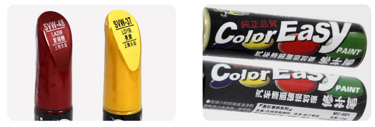 【产品介绍】 只要是车,在行走一段时间后总会有一些细小的划痕擦痕,让人心里又怜又恨。当您的爱车有了轻微划伤,现在不用担心了,易彩汽车漆面修补笔可以解决您的烦恼!随身带一支易彩补漆笔,可以快速有效地修补汽车漆面的细小划痕迹。使用十分方便,适用多种漆面,用后几乎看不出任何痕迹。只需对照车漆颜色选择合适的型号,在细小的刮痕或油漆剥落处涂上本品后即可修补、掩盖及填平伤痕,且具防止生锈的功能。本品均使用进口原料,按原车色号调配,现备有400余款车色补漆笔以供选择。装上任意颜色的补漆笔, 即刻轻松升级为“超级迷你自动喷漆”。专为小伤痕设计的超级细小喷幅,喷涂时没有飞溅的漆雾,修补后表面光滑平整,2毫米内的凹坑也可轻松搞定! 注:划痕与刮痕区别:划痕是指被利器所划留下的一条比较细而深的印迹。刮痕是指车身与障碍物摩擦而留下的较大面积的印迹。